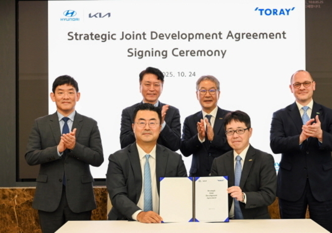 인더뉴스 김용운 기자ㅣ현대차그룹이 도레이(Toray)그룹과 미래 모빌리티 분야에서 공동 개발을 본격화합니다. 현대차그룹은 지난 24일 도레이그룹과 전략적 공동 개발 계약(Strategic Joint Development Agreement)을 체결했다고 27일 밝혔습니다. 이날 체결식은 서울 양재동 현대차그룹 본사 사옥에서 열렸으며 현대차그룹 GSO(Global Str…