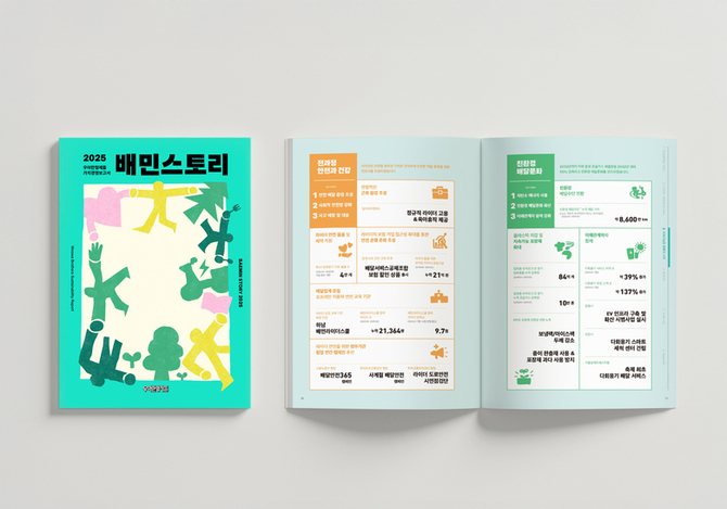인더뉴스 이종현 기자ㅣ배달의민족 운영사 우아한형제들(대표이사 김범석)은 사회적 가치 창출을 위해 노력한 다양한 활동과 비재무적 성과를 공유하는 가치경영보고서 ‘배민스토리 2025’를 발간했다고 12일 밝혔습니다. 올해로 다섯 번째 발간하는 ‘배민스토리 2025’는 파트너(외식업주), 라이더, 친환경, 지역사회와의 상생 등 배민이 지속가능경영을 실천하…