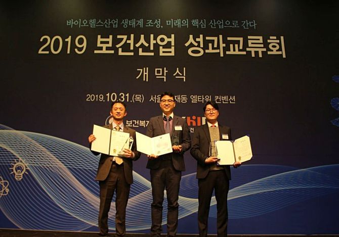 인더뉴스 김진희 기자ㅣ대웅제약(대표 전승호)이 지난 31일 엘타워컨벤션에서 한국보건산업진흥원 주최로 개최된 ‘2019 보건산업 성과 교류회’에서 우수 혁신형 제약 기업으로 선정돼 보건복지부장관상과 한국보건산업진흥원장상을 수상했습니다. 대웅제약은 자체 개발 보툴리눔 톡신 제제가 아시아 최초로 미국·유럽 등 선진국 허가가 완료된 점…