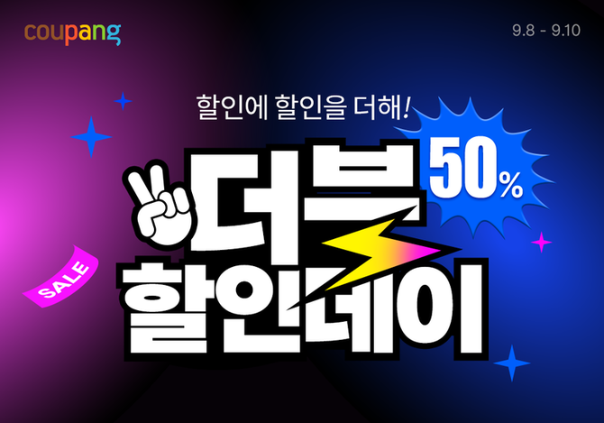 인더뉴스 이종현 기자ㅣ쿠팡은 가을 시즌을 맞아 14개 카테고리의 2만5000여개 상품을 최대 50% 할인하는 ‘더블할인데이’를 오는 10일까지 3일간 진행한다고 8일 밝혔습니다. 이번 기획전에는 약 600여개 브랜드가 참여해 식품·생활용품·가전디지털·홈 인테리어·뷰티·주방용품·패션·반려동물용품 등 다양한 카테고리의 상품들을 최대 반값에 제공합니…