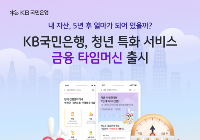 인더뉴스 문승현 기자ㅣKB국민은행(은행장 이환주)이 청년고객을 위한 미래자산예측서비스 ‘금융 타임머신’을 선보였습니다. ‘금융 타임머신’은 만 20세부터 39세 이하 청년을 대상으로, 독립·취업·결혼 등 주요 생애 이벤트에 따라 5년뒤 예상 자산규모를 보여주는 서비스입니다. 이를 통해 청년고객은 자신의 미래 금융 모습을 미리 체험하며 합리적인 자산…