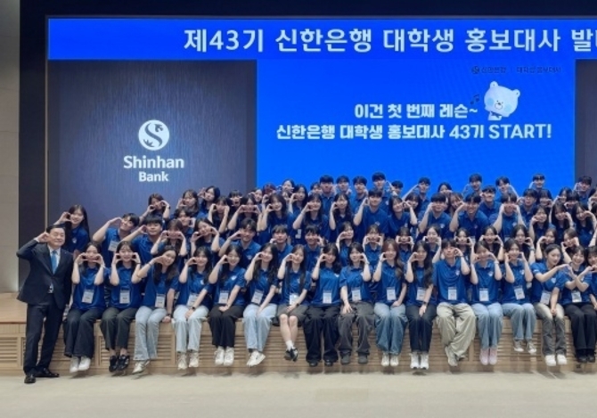 인더뉴스 문승현 기자ㅣ신한은행(은행장 정상혁)은 28일 본점 20층 대강당에서 제43기 신한은행 대학생 홍보대사(신.대.홍) 발대식을 열었다. 신한은행은 서류·면접전형을 거쳐 소통, 공감능력, 창의적 아이디어를 갖춘 전국 각지역 대표 대학생 100명을 선발했다. 43기 신.대.홍은 발대식 후 신한은행 연수원 '블루캠퍼스'에서 신.대.홍의 역할과 브랜드 전략 강의, 팀…