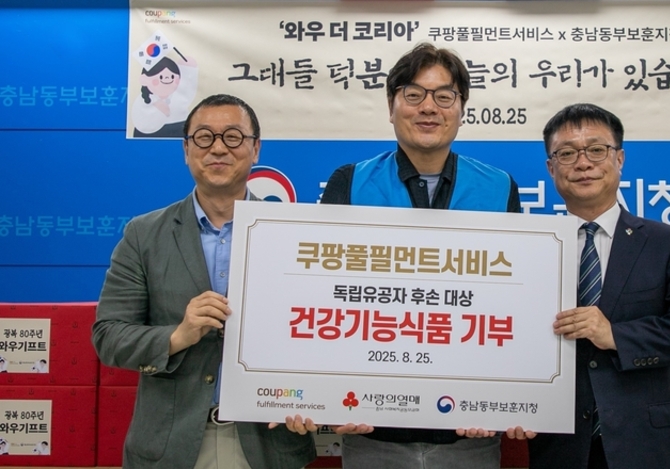인더뉴스 김홍식 기자ㅣ쿠팡풀필먼트서비스(CFS)는 광복 80주년을 맞아 독립유공자 후손들에게 감사의 마음을 전하는 특별한 나눔을 펼쳤다고 26일 밝혔습니다. 이번 활동은 CFS의 사회공헌 ‘와우 더 코리아’ 나라사랑 캠페인의 일환으로, 국가보훈부 충남동부보훈지청 및 충남사회복지공동모금회(사랑의열매)와 함께 기획했습니다. ‘와우 더 코리아’는 국가…