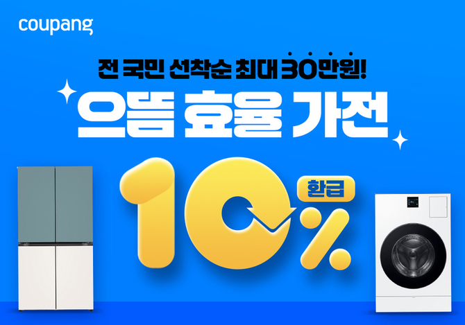 인더뉴스 이종현 기자ㅣ쿠팡은 정부의 '으뜸효율 가전제품 환급사업'에 동참해 진행 중인 기획전이 정부 환급, 카드사 즉시 할인에 빠르고 편리한 '로켓설치'까지 더한 3중 혜택을 제공한다고 27일 밝혔습니다. 쿠팡이 진행 중인 '으뜸 효율 가전' 기획전은 정부 환급뿐만 아니라 쿠팡 추가 할인과 고객 맞춤형 설치 등 세 가지로 혜택을 확대했습니다. 고객들은 에너지 효…