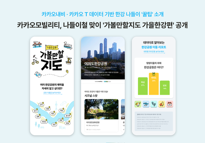 인더뉴스 이종현 기자ㅣ카카오모빌리티(대표 류긍선)가 본격적인 가을 나들이철을 맞아 이용자 맞춤형 콘텐츠 ‘가볼만할지도 가을한강편’을 2일 공개했습니다. ‘가볼만할지도’는 카카오내비와 카카오 T를 통해 축적한 방대한 이동 데이터를 바탕으로 다양한 테마의 목적지 및 이동 정보를 알려주는 일러스트 지도입니다. 이번 ‘가을한강편’은 앞서 큰 호응을…