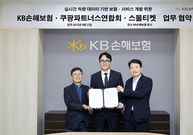 인더뉴스 문승현 기자ㅣKB손해보험(대표이사 사장 구본욱)이 쿠팡파트너스연합회, 스몰티켓과 함께 실시간 차량 데이터 기반 보험 상품 및 위험관리 서비스 개발에 나섰습니다. KB손해보험은 지난 25일 오후 서울 강남구 역삼동 KB손해보험 본사에서 쿠팡파트너스연합회, 스몰티켓과 실시간 차량 데이터 기반 보험 상품 및 서비스 개발을 위한 업무협약을 체결했습…