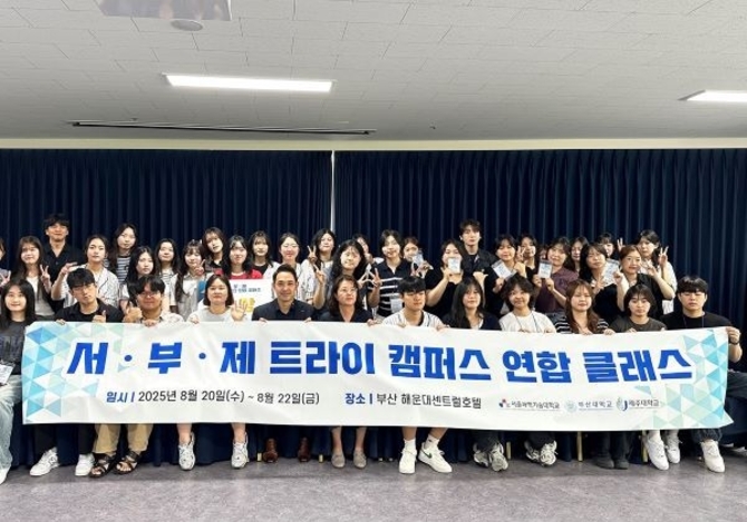 인더뉴스 제해영 기자ㅣ부산대학교는 서울과학기술대학교, 제주대학교와 함께 ‘서·부·제 트라이캠퍼스 연합 클래스’의 일환으로 ‘지역사회 현안문제 해결 아이디어 경진대회’를 지난 20일부터 22일까지 부산 해운대센트럴호텔에서 개최했다고 26일 밝혔습니다. ‘서·부·제 트라이캠퍼스’는 세 대학이 삼각형 구도로 연합해 ‘시도하다(TRY·트라이)’…