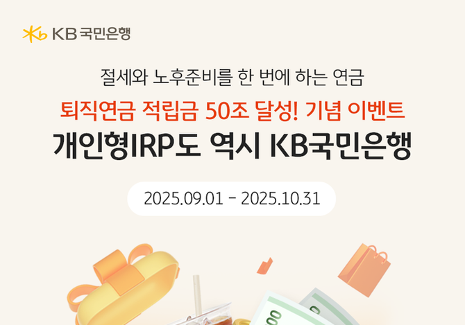 인더뉴스 문승현 기자ㅣKB국민은행(은행장 이환주)은 개인형 IRP 고객을 대상으로 ‘퇴직연금 적립금 50조 달성! 개인형 IRP도 역시 KB국민은행’ 이벤트를 진행합니다. 이번 이벤트는 오는 10월31일까지 진행됩니다. 개인형 IRP 신규 고객과 기존 고객 모두 참여할 수 있으며, 조건 충족시 다양한 경품이 제공됩니다. 개인형 IRP 신규 고객의 경우 ▲비대면 신규 가…