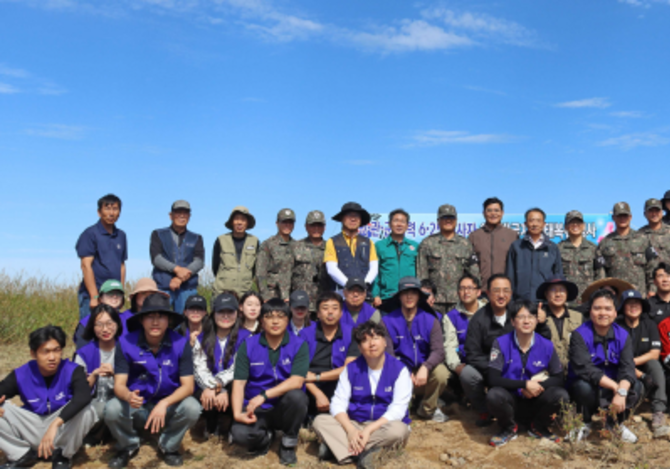 인더뉴스 김용운 기자ㅣ효성이 국립수목원, 대한민국 육군과 함께 DMZ(비무장지대) 산림 훼손지 복원에 나섰습니다. 효성은 지난 23일 강원도 양구군 민통선 내 6·25 전사자 유해 발굴지에서 ‘DMZ 산림 훼손지 복원 행사’를 진행했다고 24일 밝혔습니다. 이날 행사에는 이건종 효성화학㈜ 대표, 임영석 국립수목원장, 남진오 육군 제21사단장, 서흥원 양구군수 등…