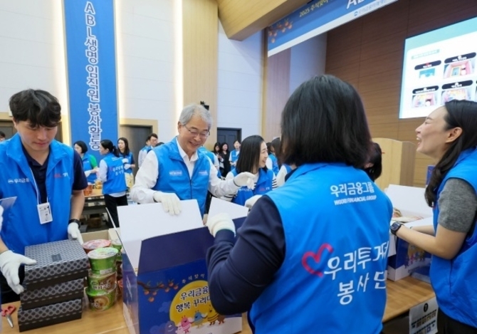 인더뉴스 문승현 기자ㅣ우리금융그룹이 설립한 공익법인 우리금융미래재단(이사장 임종룡 우리금융그룹 회장)은 올해 그룹 계열사로 편입된 ABL생명 임직원과 함께 전국 조손가정 7000세대에 전할 '우리금융 행복꾸러미' 포장 봉사활동을 했다고 24일 밝혔다. 이번 봉사활동은 우리금융미래재단 '추석맞이 조손가정 생계물품 지원사업' 일환으로 진행됐다. 행복꾸…