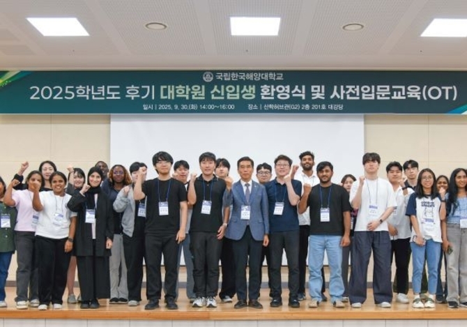 인더뉴스 제해영 기자ㅣ국립한국해양대학교 대학원(원장 국승기)은 지난 9월 30일 산학허브관에서 2025학년도 후기 신입생 환영식 및 사전입문교육을 성황리에 개최했다고 1일 밝혔습니다. 이번 행사는 신입생들의 조기 정착을 돕고 연구역량 강화를 지원하기 위해 마련됐습니다. 이날 행사에는 국승기 대학원장을 비롯한 대학원 관계자와 후기 신입생 90여 명이 참…