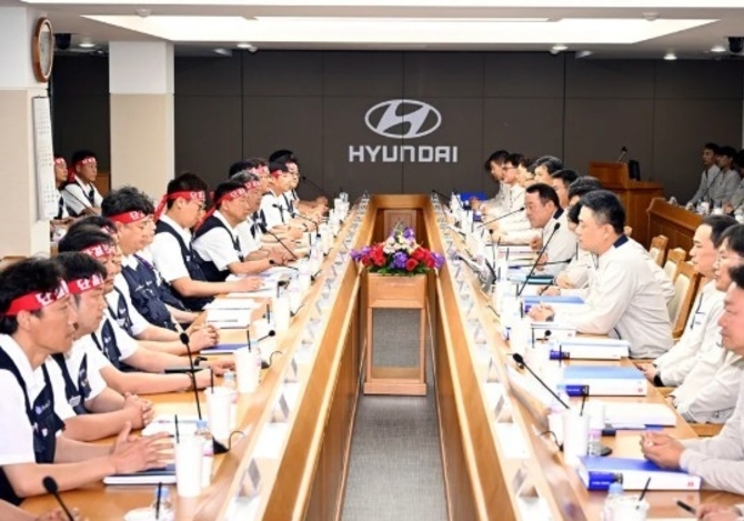 인더뉴스 김용운 기자ㅣ현대자동차 노사가 2025년 임금 및 단체협약 잠정합의안을 도출했습니다. 10일 현대차에 따르면, 지난 9일 현대차 노사는 울산공장 본관 동행룸에서 열린 20차 임단협 교섭에서 이동석 대표이사와 문용문 노조 지부장 등 노사 교섭대표가 참석한 가운데 잠정합의안에 합의했습니다. 노사는 지난해 대법원 전원합의체 판결 이후 빚어졌던 통상임…