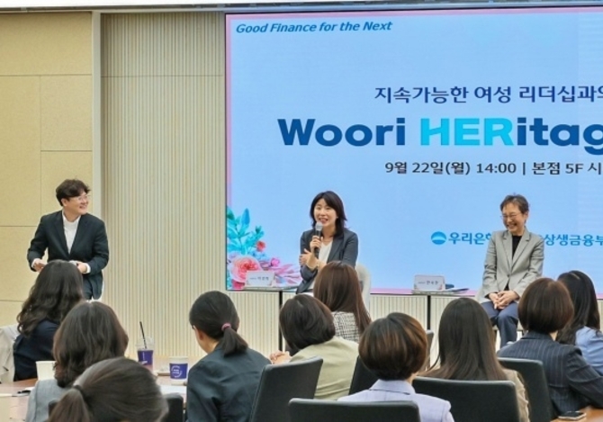 인더뉴스 문승현 기자ㅣ우리은행(은행장 정진완)은 최근 사외이사 3명을 포함한 80여명의 여성임직원이 참석한 가운데 'Woori HERitage Talk : 지속가능한 여성리더십과 대화'를 열었다. 사외이사들은 리더십 경험과 성장과정, 조직내 다양성의 중요성, 차세대 여성인재에 전하는 메시지를 공유하며 커리어·리더십 관련 조언을 전했다. 우리은행은 UN여성역…
