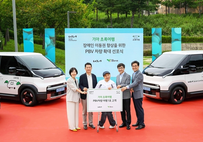 인더뉴스 김용운 기자ㅣ기아가 초록여행에 PBV 모델을 투입하고 교통약자의 더욱 편리한 여행을 지원합니다. 기아는 최근 서울 마포구에 위치한 문화비축기지에서 기아 초록여행 전국 8개 권역에 PV5 패신저 모델을 각 1대씩 총 8대 신규 도입하고 PV5 여행 1호 고객에게 차량을 전달하는 행사를 가졌다고 19일 밝혔습니다. 이날 행사에는 기아 지속가능경영 실장 이…