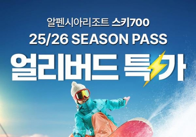 인더뉴스 이종현 기자ㅣ신세계그룹 계열 이커머스 G마켓은 오는 21일까지 ‘알펜시아 25/26 스키 시즌패스’를 얼리버드 단독 특가에 한정 수량 판매한다고 17일 밝혔습니다. 이번 시즌패스는 주중 시즌권·전일 시즌권·시즌권+락커·패밀리권·락커 이용권 등 총 11종으로 구성됐으며, 전 상품 모두 7% 할인 가격에 판매합니다. 이용 기간은 스키장 개장부터 폐장…