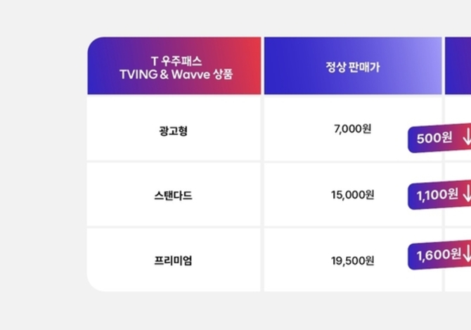 인더뉴스 이종현 기자ㅣSK텔레콤[017670]은 구독 플랫폼 T 우주를 통해 ‘티빙 & 웨이브’ 결합 상품을 출시한다고 1일 밝혔습니다. 이 상품은 광고형(6500원), 스탠다드(1만3900원), 프리미엄(1만7900원) 등 세 가지로 구성, 정상가 대비 최대 1600원 할인된 가격에 제공됩니다. SKT는 상품 출시를 기념해 T멤버십에서 이달 6일부터 10일까지 광…