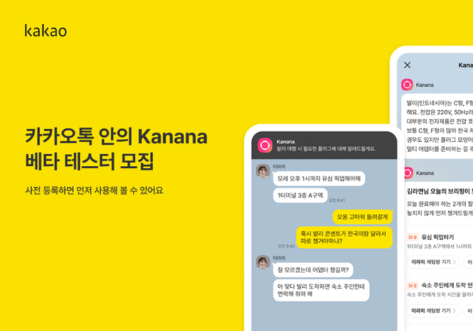 인더뉴스 이종현 기자ㅣ카카오[035720]는 새로운 AI 서비스 ‘카나나 인 카카오톡’의 베타 테스트에 참여할 이용자를 사전 모집한다고 1일 밝혔습니다. 카나나 인 카카오톡은 카카오톡 안에서 이용자가 도움이 필요한 순간을 알아차리고 먼저 다가가는 서비스입니다. 대화 상황을 이해해 일정 관리, 정보 안내, 장소 및 상품 추천을 합니다. 이용자가 카나나와 대화…