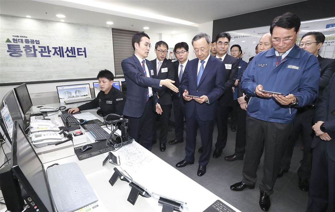 황창규 회장과 KT 임원들은 여의도 면적(약 290만㎡)의 1.5배에 이르는 울산 현대중공업 곳곳에서 산업안전, 비용절감, 생산성 증대를 목적으로 진행되고 있는 다양한 Digital Transformation 솔루션을 체험했습니다.