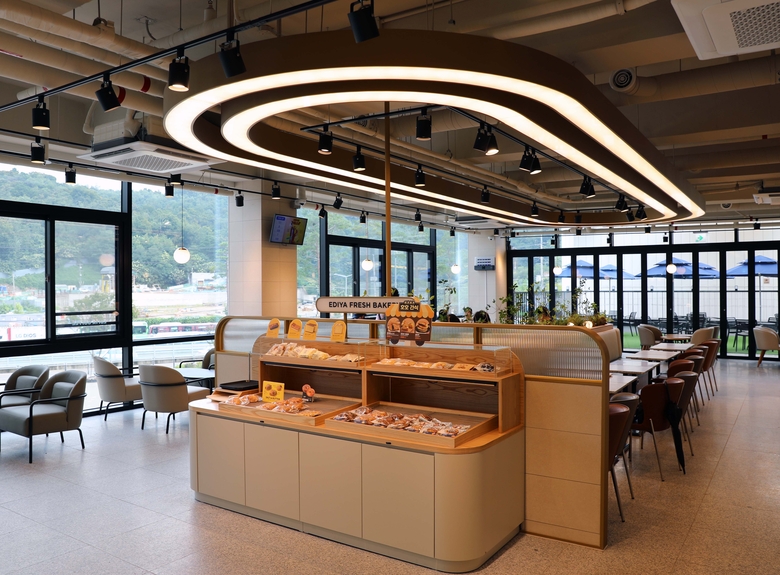 '이디야커피 관악산 으뜸점’은 관악산 등산로 입구에 자리잡고 있습니다. 관악산을 오르기 전, 하산 후 가볍게 커피를 즐길 수 있는 장소. 매장은 총 2층 건물로 계단 중간에도 휴게 공간이 마련돼 있습니다. 2층 내부는 넓은 통창 구조로 돼 있어 창가 좌석에서 초록빛으로 물든 관악산 풍경을 한눈에 담을 수 있습니다.