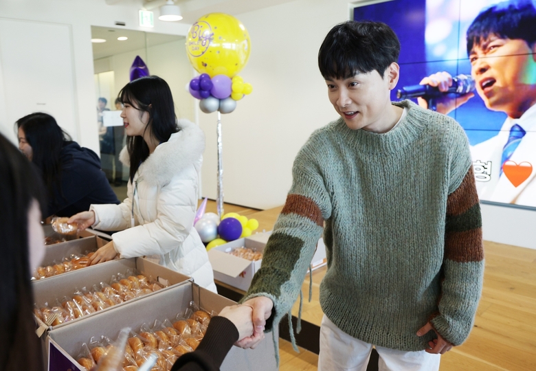지난 3일 서울 역삼동 소재 G마켓 본사 라운지에서 열린 ‘빅스마일데이’ 기념 사내 이벤트에 가수 민경훈이 임직원에게 직접 커피와 디저트를 나눠주며 “소비자와 직원 모두에게 즐거운 쇼핑 축제가 되길 바란다”는 응원의 메시지를 전했다.