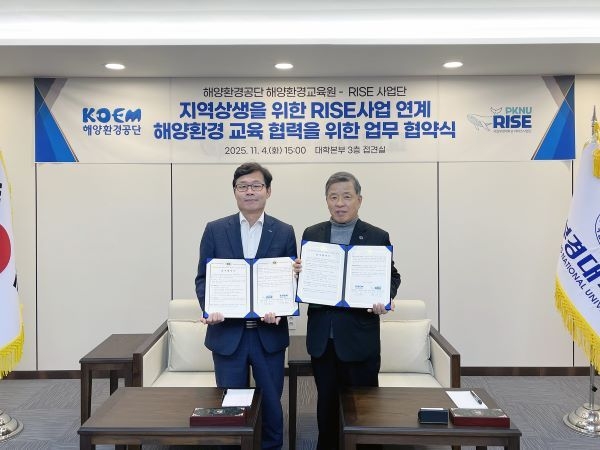 인더뉴스 제해영 기자ㅣ국립부경대 RISE사업단(단장 하명신 대외부총장)과 해양환경공단 해양환경교육원(원장 나선철)은 지난 4일 상호 협력 강화를 위한 업무협약(MOU)을 체결했다고 5일 밝혔습니다.