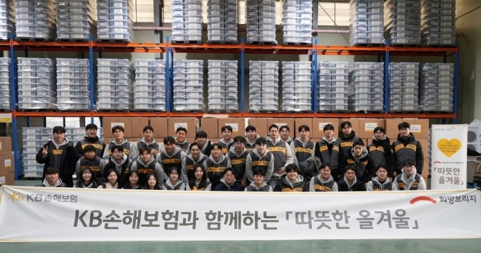 인더뉴스 문승현 기자ㅣKB손해보험(대표이사 사장 구본욱)은 7일 파주재해구호물류센터에서 신입사원과 함께 취약계층의 따뜻한 겨울나기를 돕는 자원봉사활동을 벌였다. KB손해보험 신입사원들은 이불, 내복, 수면양말, 방한장갑, 핫팩 등 필수 방한물품과 간편식으로 구성된 한파구호키트를 만들었다.