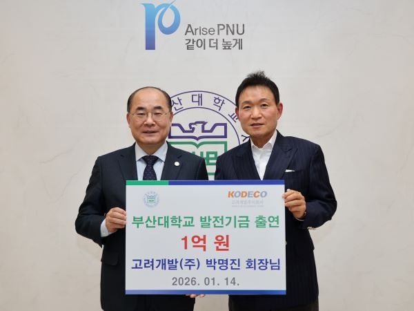 부산대학교는 박명진 고려개발 회장이 지난 14일 오후 교내 대학본부 5층 총장실에서 발전기금 출연식을 갖고 대학 발전을 위해 1억원을 출연했다고 15일 밝혔습니다. 이번 출연식에는 최재원 부산대 총장을 비롯해 대학 관계자들이 참석해 박 회장의 뜻을 기리는 시간을 가졌습니다.