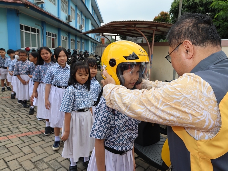 KB손해보험은 이번 사업을 통해 인도네시아 저소득가정 15가구에 전기이륜차와 안전모를 지원하고 안정적인 운행을 위한 충전인프라도 설치할 예정이다. KB손해보험은 지난 3일 인도네시아 자카르타 단비초등학교에서 전기이륜차와 안전모 전달식을 열었다.