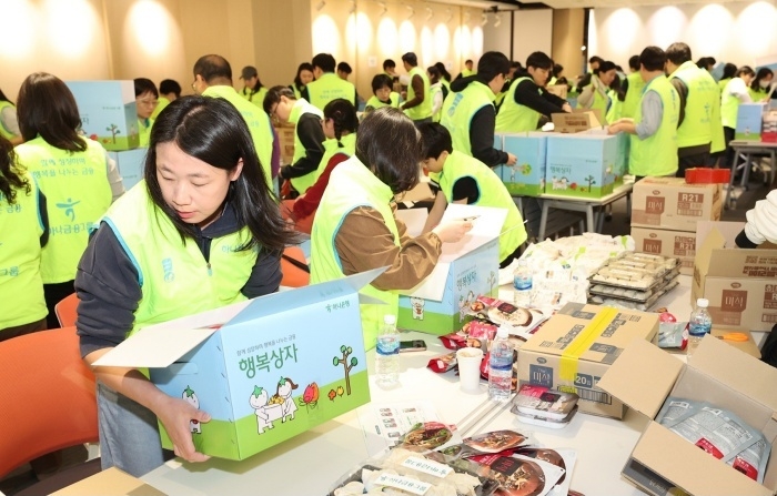 인더뉴스 문승현 기자ㅣ하나금융그룹(회장 함영주)은 7일 설명절을 앞두고 하나은행 을지로 본점에서 '만두빚기 봉사활동'을 했다. 이번 봉사활동은 홀로 명절을 보내는 독거노인들에게 온기를 전하기 위한 것으로 그룹 임직원과 가족 100여명이 자발적으로 참여했다. 봉사자들이 정성껏 빚은 손만두는 떡국떡, 한우사골곰탕, 소고기육개장, 안동국시, 즉석밥 등 명절 먹거리와 함께 '행복상자'에 담겼다. 130개 행복상자는 지역 복지관을 통해 독거노인에 전달됐다.