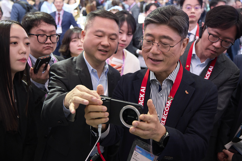 인더뉴스 이종현 기자ㅣ정재헌 SK텔레콤 CEO가 2일(현지시간) 개막한 MWC26 현장을 찾아 삼성전자의 갤럭시 S26 모델과 트라이폴드 등 디바이스를 직접 체험했다.