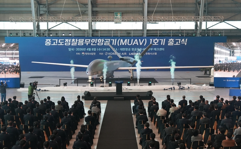 대한항공은 8일 부산 강서구 대한항공 테크센터에서 ‘MUAV 양산 1호기 출고기념식’을 개최했습니다. 방위사업청이 주관하고 대한항공과 LIG 디펜스&에어로스페이스(D&A)·한화시스템 공동 주최로 열린 출고식은 합동참모본부, 공군, 육군, 국방과학연구소, 국방기술품질원 등 민·관·군 주요 관계자 300여 명이 참석한 가운데 진행됐습니다.
