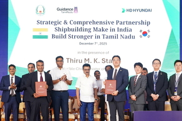 인더뉴스 김용운 기자ㅣHD현대가 인도 현지 신규 조선소 설립을 위한 사전작업에 나섰습니다. HD현대는 최근 인도 남부 타밀나두(Tamil Nadu) 주(州) 마두라이(Madurai)에서 스탈린(M.K Stalin) 주 총리 및 라자(T.R.B Rajaa) 주 산업부 장관, 최한내 HD한국조선해양 기획부문장이 참석한 가운데 '신규 조선소 건설에 관한 배타적 업무협약'을 체결했다고 8일 밝혔습니다. 인도 정부는 세계 5위 조선·해운 강국으로의 도약을 위해 '마리타임 암릿 칼 비전 2047(Maritime Amrit Kaal Vision 2047)'을 전략적으로 추진하고 있습니다. 이를 위해 기존 조선소의 증설뿐 아니라 신규 조선소의 건립을 적극 검토하고 있습니다. 실제로 인도 정부는 현재 타밀나두, 구자라트, 안드라프라데시 등 5개 주를 신규 조선소 건설 후보지로 선정, 최적의 부지를 물색하고 있는 상황입니다. 지역 경제 활성화를 위해 조선소 유치를 최우선 과제로 삼은 타밀나두 주 정부는 인센티브 및 보조금 지원, 인프라 확충, 우수인력 확보를 위한 노력을 확대하면서, HD현대를 신규 조선소 건립의 사업 파트너로 최종 낙점했습니다. 특히, 신규 조선소 건립 후보
