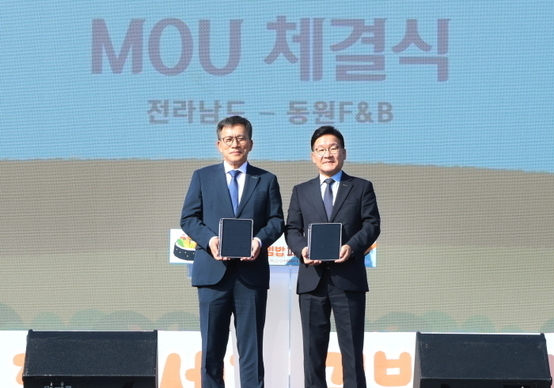 인더뉴스 문정태 기자ㅣ동원F&B(대표 김성용)가 전라남도와 손잡고 지역 수산물 소비 활성화 및 어가 상생에 나선다고 24일 밝혔습니다. 동원F&B는 이날 목포문화예술회관에서 전라남도와 ‘수산물 판로 확대 및 공동 마케팅’을 위한 업무협약(MOU)을 체결했습니다. 협약식에는 문상철 동원F&B 영업본부장과 강위원 전라남도 경제부지사 등이 참석했습니다. 이번 협약을 통해 양 기관은 전라남도의 풍부한 수산 자원과 동원F&B의 식품 제조 기술을 결합해 협업 상품을 개발하고, 지역 수산물의 판로 확대 및 마케팅 활동을 강화할 계획입니다. 특히 김을 비롯한 해조류 소비 활성화를 위한 다양한 협력 사업을 추진할 예정입니다. 전라남도는 전국 물김 생산량의 80%를 차지하는 국내 최대 김 생산지로, 조미김 시장 1위 브랜드인 동원F&B의 ‘양반김’과의 협력이 시너지를 낼 것이란 기대입니다. 동원F&B 관계자는 “이번 협약은 지역 어가와 상생할 수 있는 의미 있는 출발점”이라며 “전라남도 수산물의 품질과 가치를 높이는 협업 상품을 선보이는 한편, 글로벌 시장 진출을 통해 양 기관이 함께 성장할 수 있도록 노력하겠다”고 말했습니다.