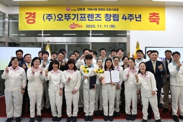 인더뉴스 문정태 기자ㅣ㈜오뚜기는 자회사형 장애인 표준사업장 ㈜오뚜기프렌즈가 지난 11일 창립 4주년 기념식을 진행했다고 13일 밝혔습니다. 기념식은 오뚜기 안양공장에서 열렸는데요. 행사에서는 오뚜기프렌즈 이학천 대표이사의 기념사와 오뚜기 황성만 대표이사, 한국장애인고용공단 경기서부지사 문상식 지사장의 축사가 이어졌고, 우수사원 3명에게 표창이 수여됐습니다. 오뚜기프렌즈는 ‘차별 없는 일터’를 목표로 장애인과 비장애인이 함께 성장하는 사회통합형 일터로 운영되고 있습니다. 2021년 설립 이후 오뚜기 제품 기반 기획생산과 점자명함 제작 사업 등을 통해 장애인의 안정적 고용과 자립을 지원하고 있으며, 같은 해 장애인 표준사업장 인증을 획득했습니다. 오뚜기는 컵라면 제품에 업계 최초로 점자 표기를 도입한 데 이어 2022년 유니버설 디자인 개념을 적용해 점자명함을 사용하기 시작했습니다. 이후 오뚜기프렌즈가 점자명함 제작을 본격화해 현재까지 총 4411건의 명함을 제작했으며, 이 중 1917건이 점자명함으로 제작돼 장애 인식 개선에도 기여하고 있습니다. 현재 오뚜기프렌즈에는 발달장애 21명을 포함해 총 22명의 직원이 근무하고 있습니다. 회사는 단순한 일자리 제공을