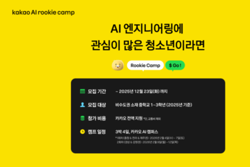 인더뉴스 이종현 기자ㅣ카카오[035720]는 인공지능(AI) 시대의 핵심 인재를 육성하고 지역 간 교육 격차를 해소하기 위해 청소년 교육 프로그램 '카카오 AI 루키 캠프'를 신설하고 참가자 모집을 진행한다고 1일 밝혔습니다. 내년 2월 개최되는 이번 캠프는 미래 소프트웨어·AI 분야에 관심 있는 청소년들이 AI 개발 전 과정을 직접 수행해 보는 실습 중심 프로그램으로 구성됐습니다. 기술을 단순히 체험하는 데 그치지 않고 기술이 사회 문제 해결에 어떻게 활용될 수 있는지 배우며 책임 있는 AI 인재로 성장하도록 돕는 것이 핵심 취지입니다. 또한, 교육 인프라 접근성이 상대적으로 낮은 비수도권 지역 청소년에게 학습 기회를 제공해 지역 간 기술 교육 편차를 줄이고 다음 세대의 성장을 지원하는 데에도 중점을 두고 있습니다. 참가 학생들은 3박 4일 동안 ▲문제 정의 ▲데이터 구성 ▲AI 모델 최적화 ▲시스템 구현 ▲윤리 검증 등 AI를 활용한 문제 해결 전 과정을 수행하며 AI 작동 원리와 기술의 사회적 영향력을 학습하게 됩니다. 또 아이디어 설계부터 구현과 발표까지 이어지는 프로젝트 기반 실습을 통해 솔루션을 완성하는 경험을 쌓습니다. 카카오 현직 개발자가 직접