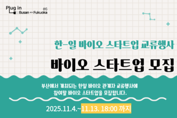 인더뉴스 제해영 기자ㅣ부산창조경제혁신센터(대표이사 김용우, 이하 부산창경)가 일본 후쿠오카의 도심개발 및 창업지원 전문기업인 후쿠오카 지쇼(Fukuoka Jisho)와 함께 한·일 스타트업 교류 프로그램 ‘Plug in: Busan ↔ Fukuoka #6’을 오는 27일부터 28일까지 부산에서 개최합니다. 이번 행사는 지난 9월 일본 후쿠오카에서 열린 ‘Plug in: Fukuoka #3’의 후속 프로그램으로, 부산과 후쿠오카를 오가며 지속적으로 이어지는 상호 교류형 글로벌 창업 행사입니다. 이를 통해 국내 스타트업이 해외 진출형 글로벌 프로그램을 직접 체험하고, 일본의 투자 및 산업계 관계자들과 실질적인 네트워킹을 구축할 수 있는 기회가 마련됩니다. 부산창경은 이번 프로그램 참가를 희망하는 바이오·헬스 분야 유망 스타트업을 오는 13일까지 모집합니다. 모집 대상은 ▲부산 지역 7년 이내 바이오·헬스 분야 스타트업(2개사 내외) ▲전국 창조경제혁신센터 보육기업 중 기술집약형 바이오 스타트업(3개사 내외) 등 총 5개사 내외입니다. 선정된 기업들은 본 행사에서 ▲IR 피칭 및 피드백 ▲한·일 벤처캐피털(VC) 및 산업계 관계자와의 라운드 밋업 ▲네트워킹 세션