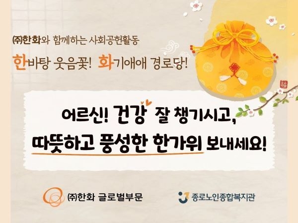 ㈜한화 이영찬 인사지원팀장은 “추석을 앞두고 주변의 외로운 이웃을 돌아보는 것이 무엇보다 중요하다”며 “㈜한화는 앞으로도 지역사회와 사회적 약자를 위한 다양한 프로그램을 추진해 나가겠다”고 말했습니다.