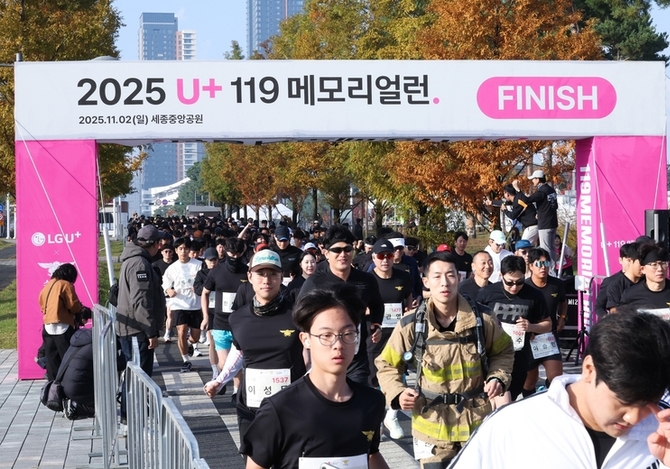 인더뉴스 이종현 기자ㅣLG유플러스[032640]는 소방청과 함께 개최한 순직소방관 추모 마라톤 '119메모리얼런'이 2300여명의 참가자를 모으며 성황리에 종료했다고 3일 밝혔습니다. 지난 2일 세종시 세종중앙공원에서 열린 '119메모리얼런'은 참가자들이 자신의 이름과 함께 순직 소방관 1명의 이름 및 순직일이 적힌 배번표를 달고 달리며 추모의 의미를 되새기…