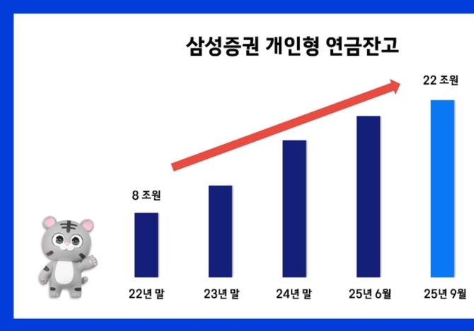 인더뉴스 박호식 기자ㅣ삼성증권의 연금저축과 DC/IRP를 합한 총 개인형연금 잔고(평가금 기준)가 22조2000억원을 돌파하며 높은 성장세를 보이고 있습니다. 삼성증권에 따르면 삼성증권의 총 개인형 연금 잔고는 2024년말 17조1000억원대에서 2025년 9월11일 기준 22조2000억원을 넘어서며 30% 성장했습니다. 같은기간 총 연금잔고도 21조2000억원에서 2…