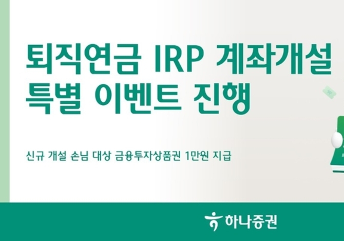 인더뉴스 박호식 기자ㅣ하나증권(대표이사 강성묵)은 IRP 계좌를 신규개설하면 금융투자상품권 1만원을 지급하는 특별 이벤트를 올해말까지 진행한다고 17일 밝혔습니다. 이번 이벤트는 하나증권 홈페이지 및 MTS(모바일 트레이딩 시스템) ‘원큐프로’의 이벤트 화면을 통해 하나증권 IRP 계좌를 신규개설하면 누구나 참여할 수 있습니다. 금융투자상품권 1만원…