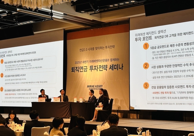 인더뉴스 박호식 기자ㅣ미래에셋자산운용은 ‘2025년 하반기 퇴직연금 투자전략 세미나’를 성공적으로 개최했다고 16일 전했습니다. 15일 포시즌스호텔 서울에서 열린 이번 세미나는 국내 퇴직연금 시장을 선도하는 미래에셋자산운용이 기금형 퇴직연금 등 최근 퇴직연금 시장의 주요 제도 변화를 짚어보고 투자전략을 공유하기 위해 마렸했습니다. 첫번째 세션에…
