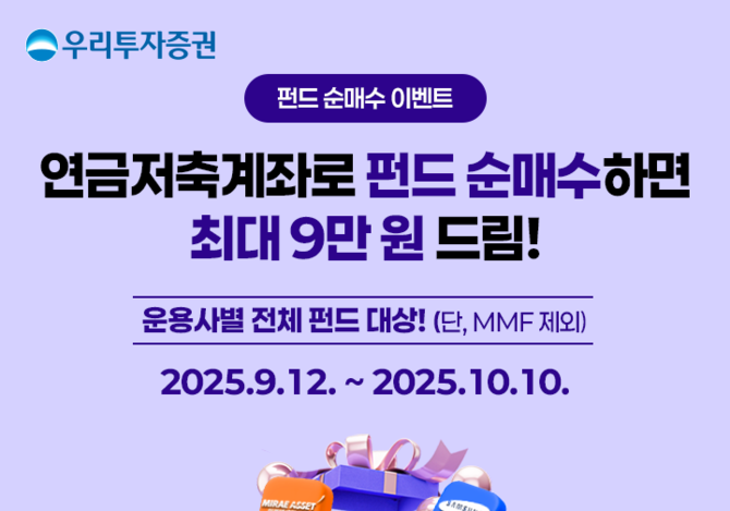 인더뉴스 박호식 기자ㅣ우리투자증권(대표 남기천)은 오는 10월10일까지 연금저축계좌를 활용해 펀드에 투자한 고객을 대상으로 ‘펀드 순매수 이벤트’를 진행합니다. 우리투자증권의 연금저축계좌에서 펀드를 매수한 개인고객에게 순매수 금액대별 혜택을 최대 9만원 상당의 모바일 문화상품권으로 제공합니다. 고객의 투자편의와 더 많은 혜택을 제공하기 위해…
