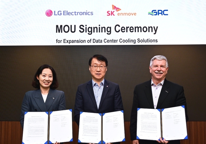 인더뉴스 이종현 기자ㅣLG전자가 SK엔무브, 미국 액침냉각 전문기업 GRC(Green Revolution Cooling)와 손잡고 AI 데이터센터 냉각솔루션 포트폴리오를 액침냉각 방식까지 확장합니다. LG전자[066570]는 3사가 27일 경기도 평택시 LG전자 칠러사업장에서 AI 데이터센터 냉각솔루션 사업 확대를 위한 업무협약(MOU)을 체결했다고 28일 밝혔습…
