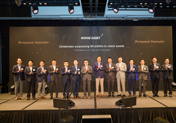 인더뉴스 박호식 기자ㅣ박현주 미래에셋그룹 회장이 그룹 고객자산 1000조원 돌파 기념행사에서 “지난해말 900조원과 비교하면 현재 20%의 성장률을 기록하고 있다”며 “지금의 성장률대로라면 미래에셋 운용자산은 10년후 7000조에 육박할 것으로 기대한다”고 밝혔습니다. 미래에셋그룹은 지난 1일 서울 포시즌스호텔에서 고객자산(AUM) 1000조원 돌파 기…