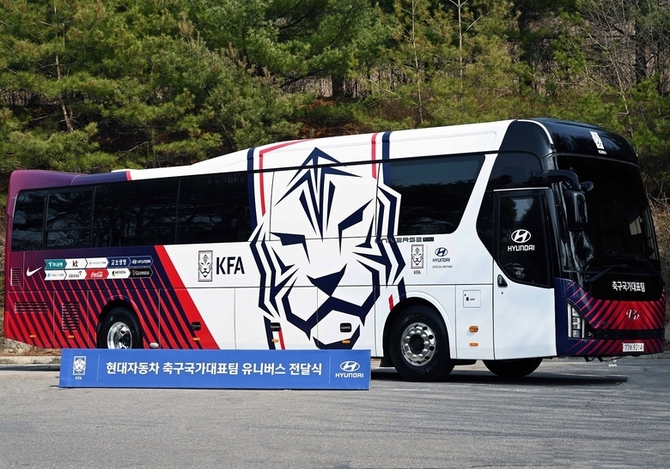 인더뉴스 홍승표 기자ㅣ현대자동차[005380]가 대한민국 축구 국가대표팀을 지원하고자 대한축구협회에 전용 버스를 후원했습니다. 21일 현대차에 따르면, 지난 20일 파주 NFC에서 차량 전달식을 열고 프리미엄 고속버스인 '유니버스' 1대를 대한축구협회에 제공했습니다. 유니버스는 29인승 버스로 ▲운전자 주의 경고(DSW) ▲전방 충돌 방지 보조(FCA) ▲스…