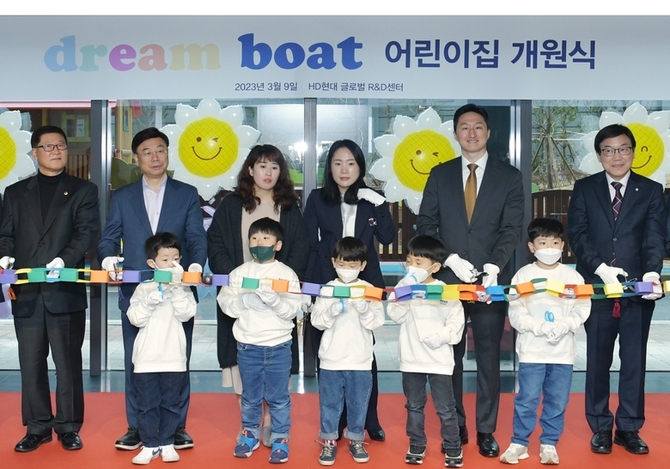 인더뉴스 홍승표 기자ㅣHD현대[267250]가 기업 임직원들의 육아 부담을 줄이고 가족친화적 기업문화 조성을 목적으로 사내 어린이집을 개설했습니다. HD현대는 9일 경기도 판교 글로벌R&D센터에서 사내 어린이집 '드림보트'의 개원식을 진행했다고 이날 밝혔습니다. HD현대에 따르면, 드림보트 어린이집은 연면적 2222㎡(672평), 최대 정원 300명 규…