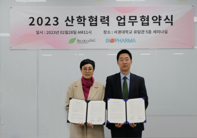 인더뉴스 양귀남 기자ㅣ바이오파마는 서경대학교 뷰티테라피·메이크업학과와 미용예술분야 산학협력을 위한 업무협약을 28일 체결했다고 밝혔다. 이날 서경대에서 진행된 협약식은 바이오파마 최승필 대표 및 관계자들과 서경대학교 뷰티테라피·메이크업학과 김은숙 학과장를 비롯한 교수진들이 참석했다. 이번 협약을 통해 양 기관은 ▲교육과정 공동개발 및 발…
