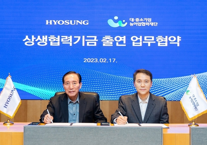 인더뉴스 홍승표 기자ㅣ효성[004800]이 중소기업 및 농어촌 지역과 상생하는 차원으로 100억원의 협력기금을 출연합니다. 20일 효성에 따르면, 지난 17일 대·중소기업·농어업협력재단과 ‘대·중소기업 상생협력기금 및 농어촌상생협력기금 출연 협약’을 체결했습니다. 대·중소기업 상생협력기금과 농어촌 상생협력기금은 각각 중소기업, 농어촌과 상생협…