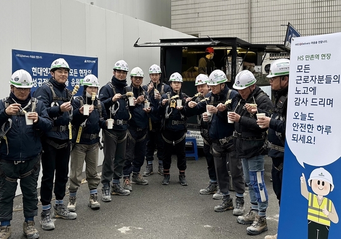 인더뉴스 홍승표 기자ㅣ현대엔지니어링은 지난 11일 창립 49주년을 맞아 현장 직원을 위한 간식차 서비스인 'HEC心(핵심) Delivery'를 오는 17일까지 운영한다고 14일 밝혔습니다. 현대엔지니어링에 따르면, 'HEC心 Delivery'는 현장에서 근무하는 임직원 및 협력사 직원에 격려와 응원 메시지 및 간식을 전달하는 사내 캠페인입니다. 임직원 간 응원과 교류를 통…