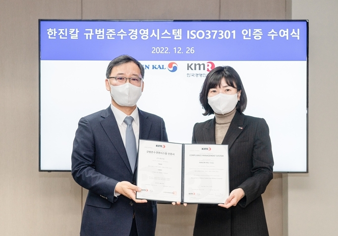 인더뉴스 홍승표 기자ㅣ한진칼[180640]은 한국경영인증원으로부터 국제표준화기구(ISO)의 규범준수경영시스템(ISO37301)에 대한 인증을 획득했다고 27일 밝혔습니다. 규범준수경영시스템은 국제표준화기구가 제정한 국제 표준으로 기업의 컴플라이언스 정책과 리스크 관리체계 등이 글로벌 수준에 부합하는지에 대한 여부를 인증하는 제도입니다. 한진칼 윤…